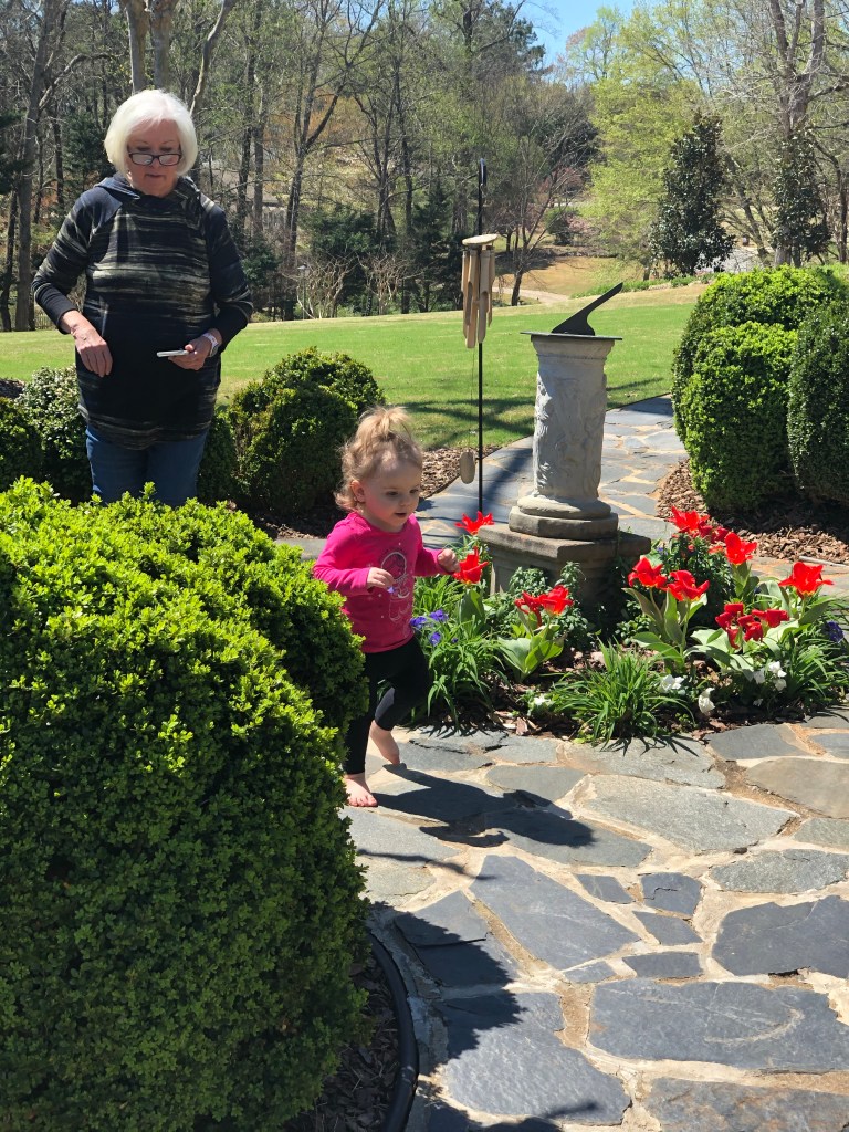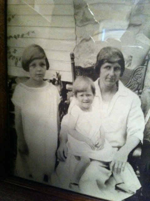 The vintage family photograph from circa 1920 pictures my grandmother, Nellie Mae Mills Liddell with my Aunts Ruth Liddell Seay and Virginia Liddell Russell in the garden of the 1840 Homeplace which is now the site of much commercial development around Steve Reynolds Boulevard in Duluth.