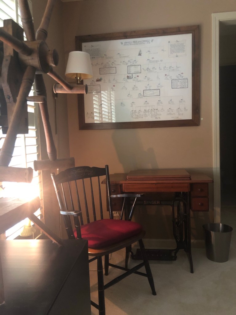 Liddell Family Tree , yarn-winderLiddell House built in 1840. Photograph of Thomas Haney Liddell and Elizabeth Collier Liddell with granddaughter circa 1903Early 19th century six board chestDonley Store Singer sewing machine, Canton, Georgia, circa 1920Originally a treadle machine, it was electrified at some point.CSA Officer’s saber of Colonel George Washington Mills (1839-1910)
