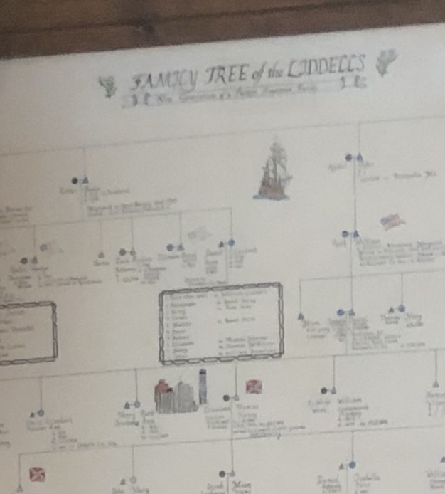 I researched the genealogy of my mother’s family from an early age. When I started teaching at Duluth High School in 1976, I was lucky to have a gifted artist as a student in one of my English classes. Gregory Jarrell took my rough charts and created a large family tree that I have kept framed and displayed for over forty years. I made sure that each of my Liddell aunts and uncles received full scale copies of the family tree.