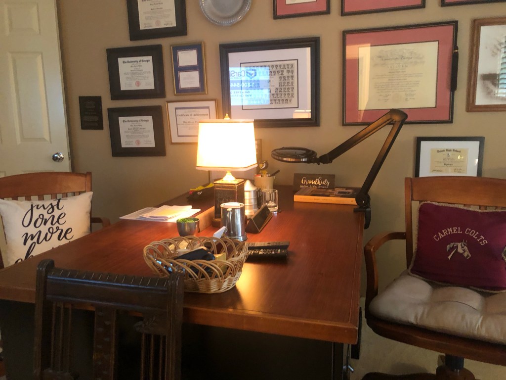 A large partners desk anchors the space. Mary and I have shared the desk and have a “wall of fame.”