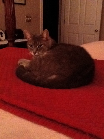 My buddies are with me, but they are in total cat repose. Birthday Girl hasn’t made it back to join us, yet. And yes, it does take a bit to bring a stubborn fellow down and keep him down. Even a night out at a horror movie… It was one that I’d been trying to get Mary to see, without even a chink in her no-way armor.