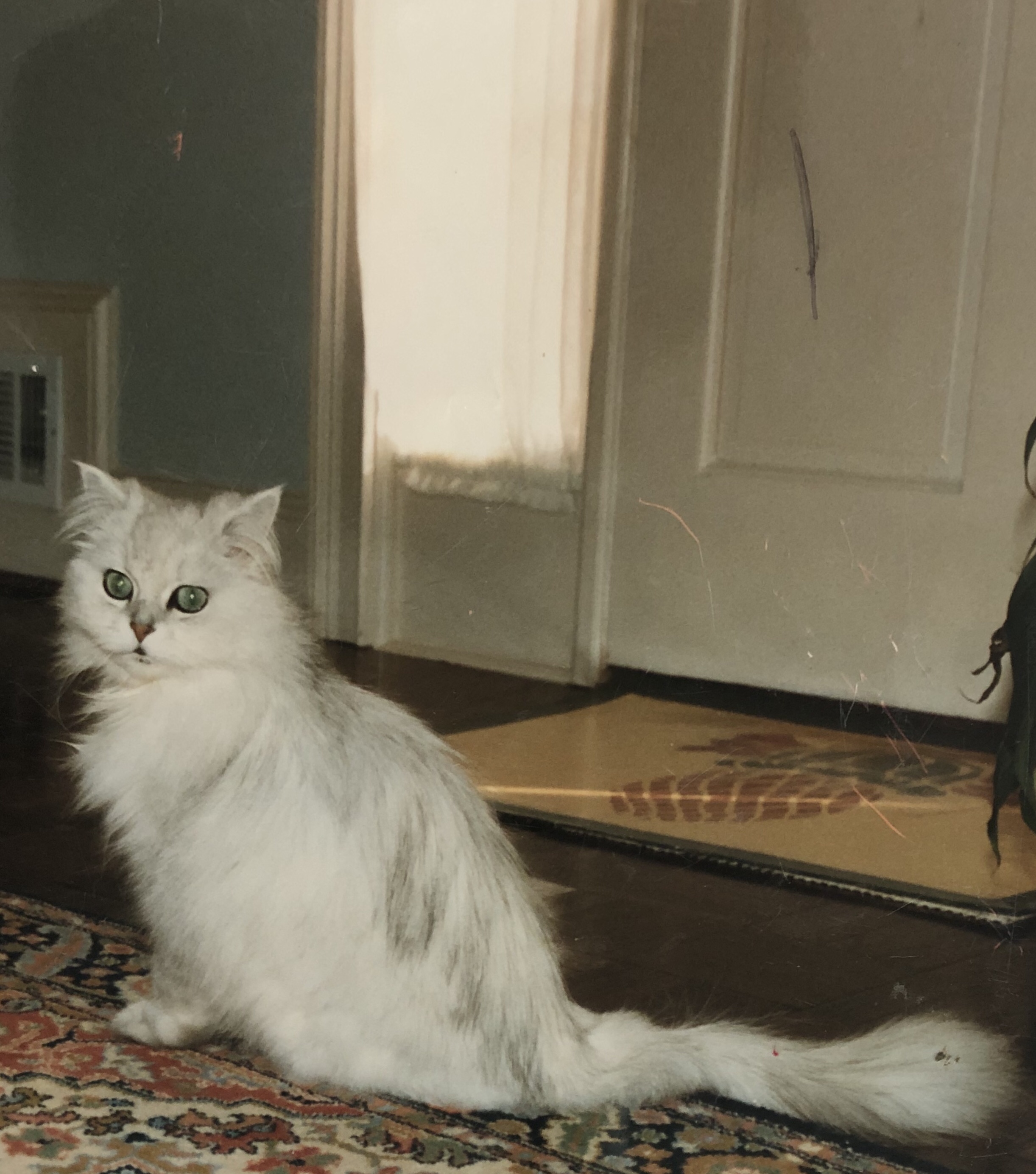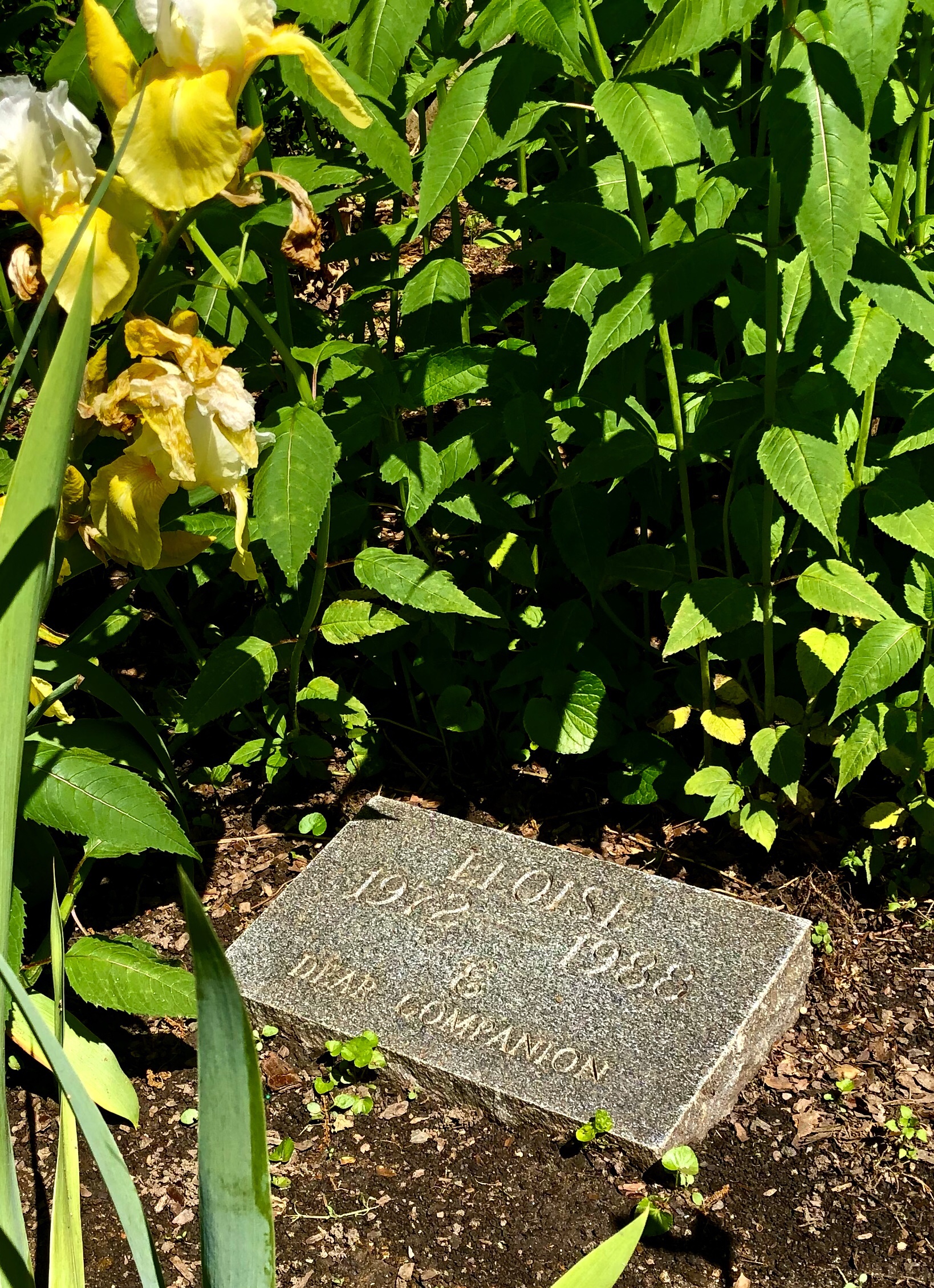 The garden fence and boxwoods enclose about one hundred square feet of space. The Seasons Garden contains a memorial to a pet cat. Chincheloise, or Eloise, was a shaded silver Persian that Mary and I adopted from the Atlanta Humane Society in 1977. She was a mature, long-haired Persian that was the “Pet of the Week” in the Atlanta Journal-Constitution. Eloise was a beauty that needed a caring home. She lived with us for ten years in Lawrenceville, Georgia. We brought her carved granite memorial to our home when we moved in 1992.